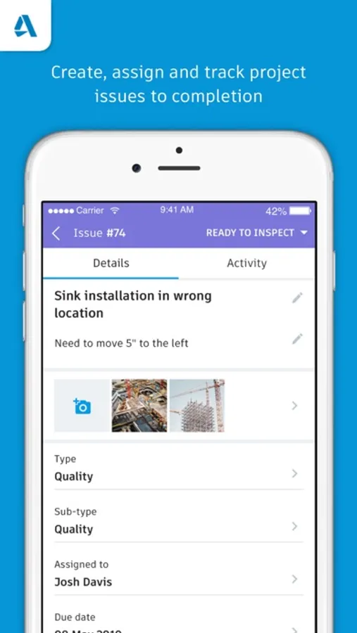 • Create, assign and approve RFIs, and pin to location on drawing.