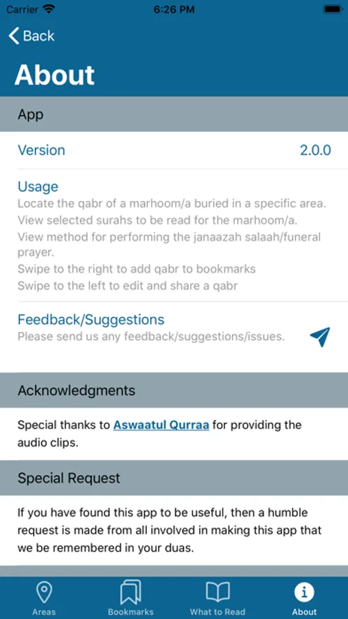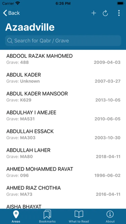 - Bookmark qabrs for easy navigation to qabrs of friends and family.