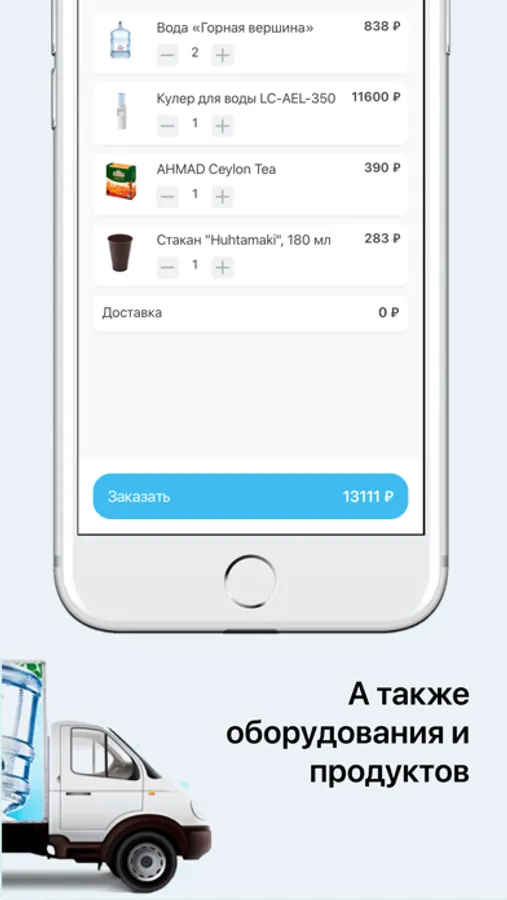 С мобильным приложением "H2O.ru" вы можете быстро и просто заказать питьевую воду, кулеры и сопутствующие товары в любое время и в любом месте. Мы доставим ваш заказ по Москве и Московской области бесплатно.
