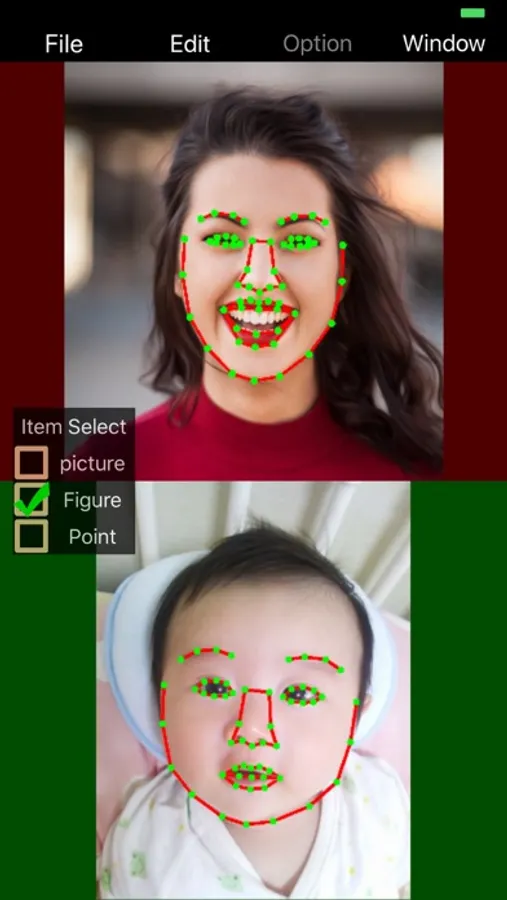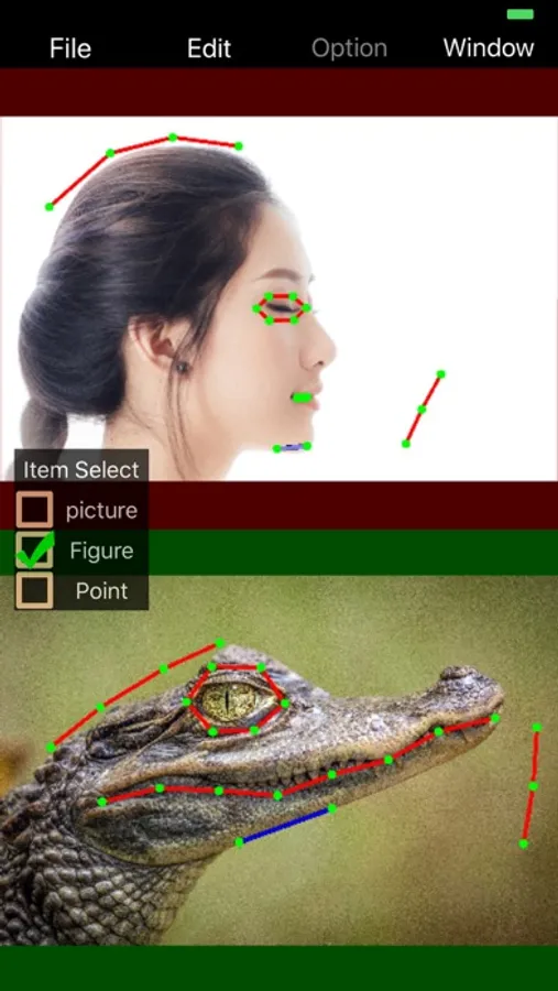 1. Select FaceCheck or Add Circle Marker or Add Line Marker from the Edit menu to place the corresponding points in the upper and lower images.