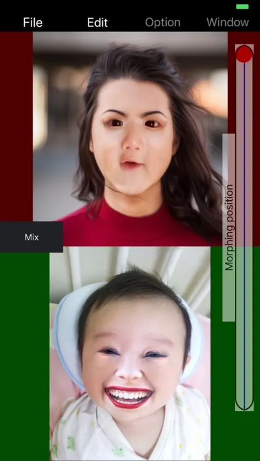 The composition ratio of the image can be adjusted with the Morphing position slider (from the upper image to the under image).