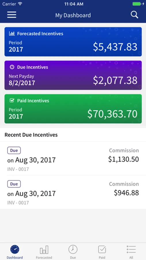 • Due incentives: Find out how much you will get paid on the next payroll cycle.
