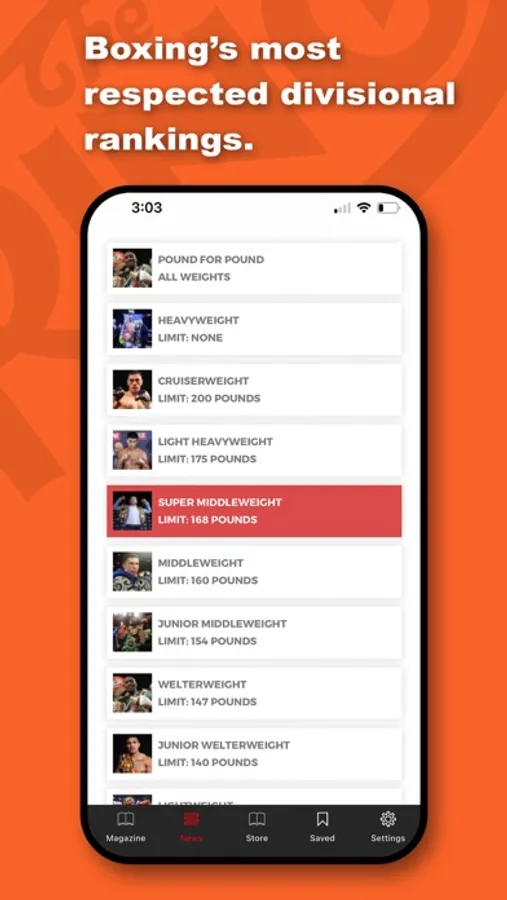 For over 100 years, The Ring has been ingrained in the sport of boxing, providing unparalleled coverage, insight and analysis from the top journalists and historians in the business. Followed by all the greats, cited by pundits and respected around the globe for its rankings, the men and women who wear a Ring belt have long been seen as the "true" champion of their division. With the Ring app, you'll be able to view current and past issues and access weekly updated rankings as well as our newsfeed linking you to preview articles, weigh-ins, fight results and schedule to keep you in the loop.