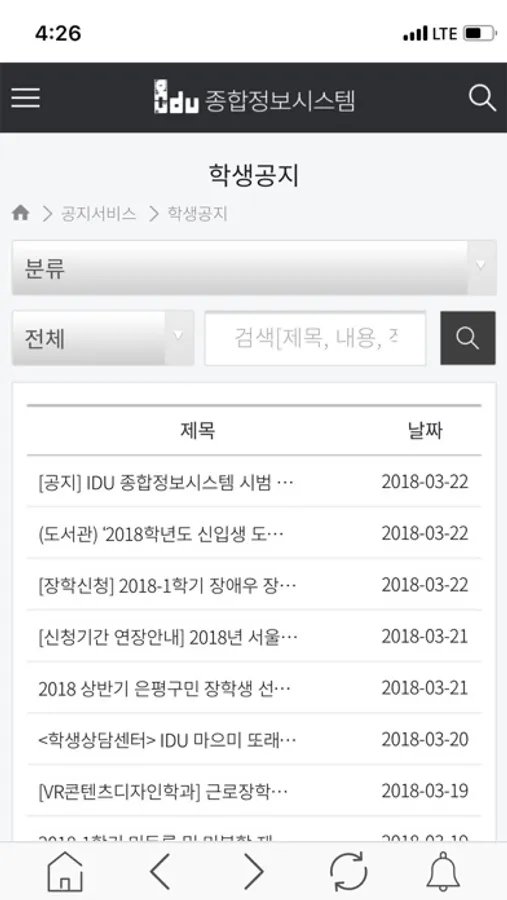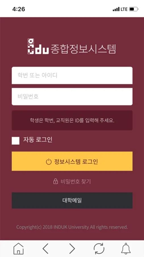 인덕대학교 IDU종합정보시스템 어플리케이션입니다.