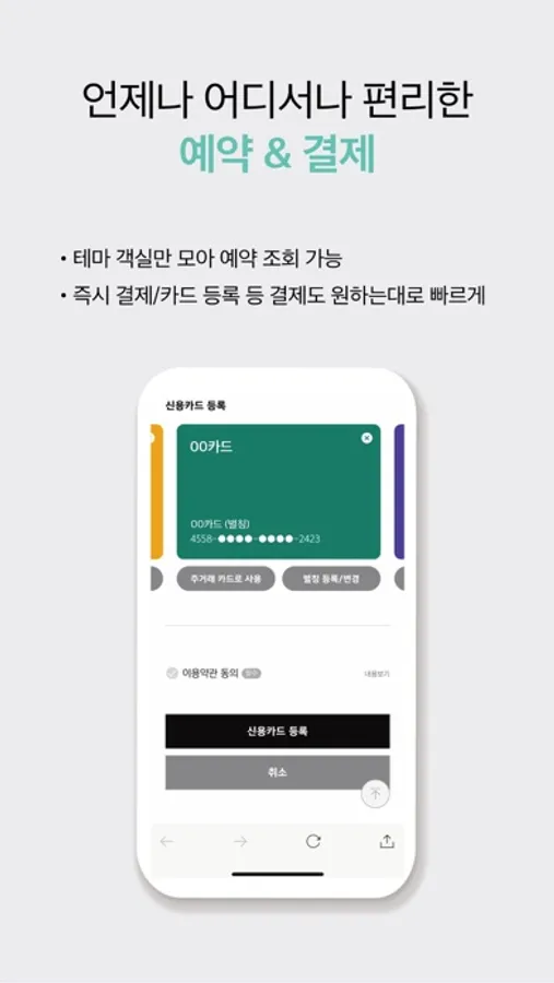 - 즉시 결제 또는 보증용 카드 등록, 원하는 결제 방식 모두 OK
