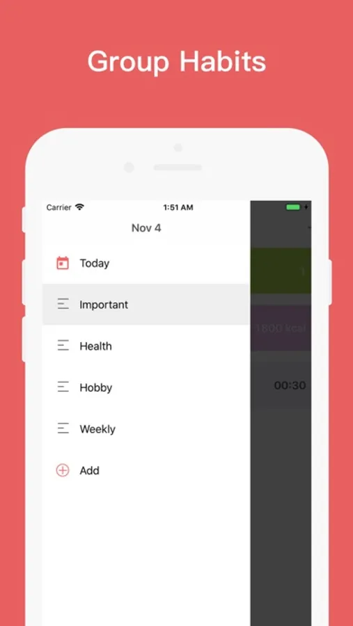• Duration Mode: Record habit by duration, there are two mode to record duration. Slide right to add, or long touch to start a timer.