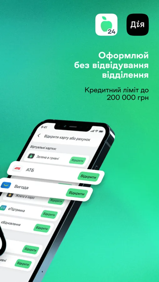 5 хвилин і картка Ваша! Замовляйте найкращу картку «Зелена» з кредитним лімітом до 200 000 грн і пільговим періодом до 62 днів вже сьогодні, без відвідування відділень та черг: