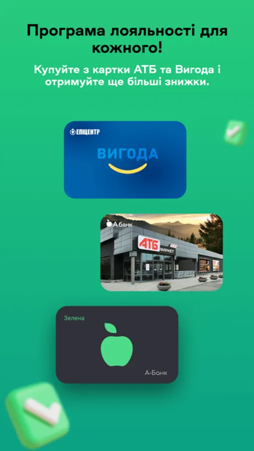 “Кешбек” — програма лояльності для клієнтів А-Банку. Обирайте дві категорії від банку та безліч категорій від наших партнерів. В категоріях від банку можна повертати до 20% від трати та виводити реальні кошти на картку.