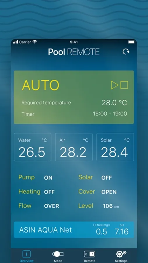 Pool Remote is used for remote control of swimming pool technology using the network controller ASIN Pool. Pool Remote can NOT be used to control ASIN Aqua and Watersens dosing devices. Do not wait for the storm and install the app right now.