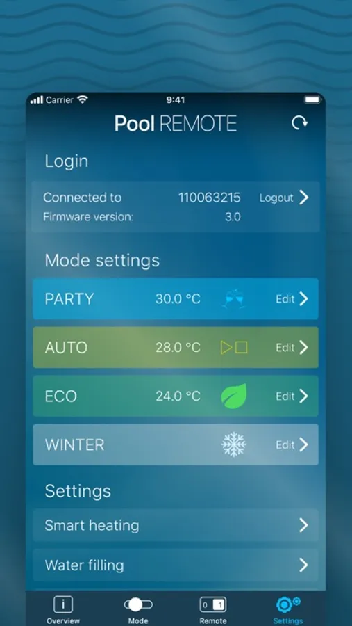Every single mode can be edited for your specific needs. You are able to set custom values of the heating, drain or speed of the pump during the day.