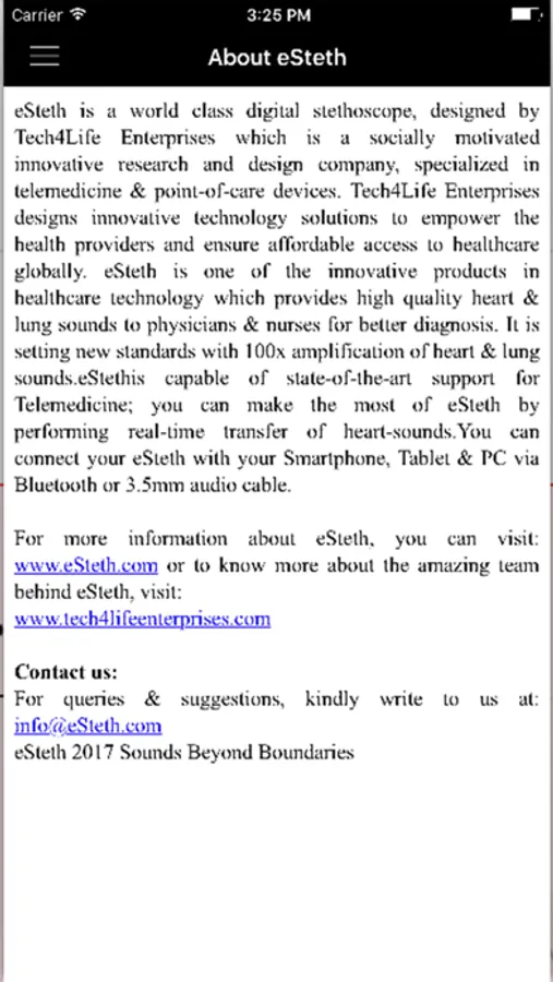 eSteth is a world class digital stethoscope, designed to provide high quality heart & lung sounds to physicians & nurses for better diagnosis.