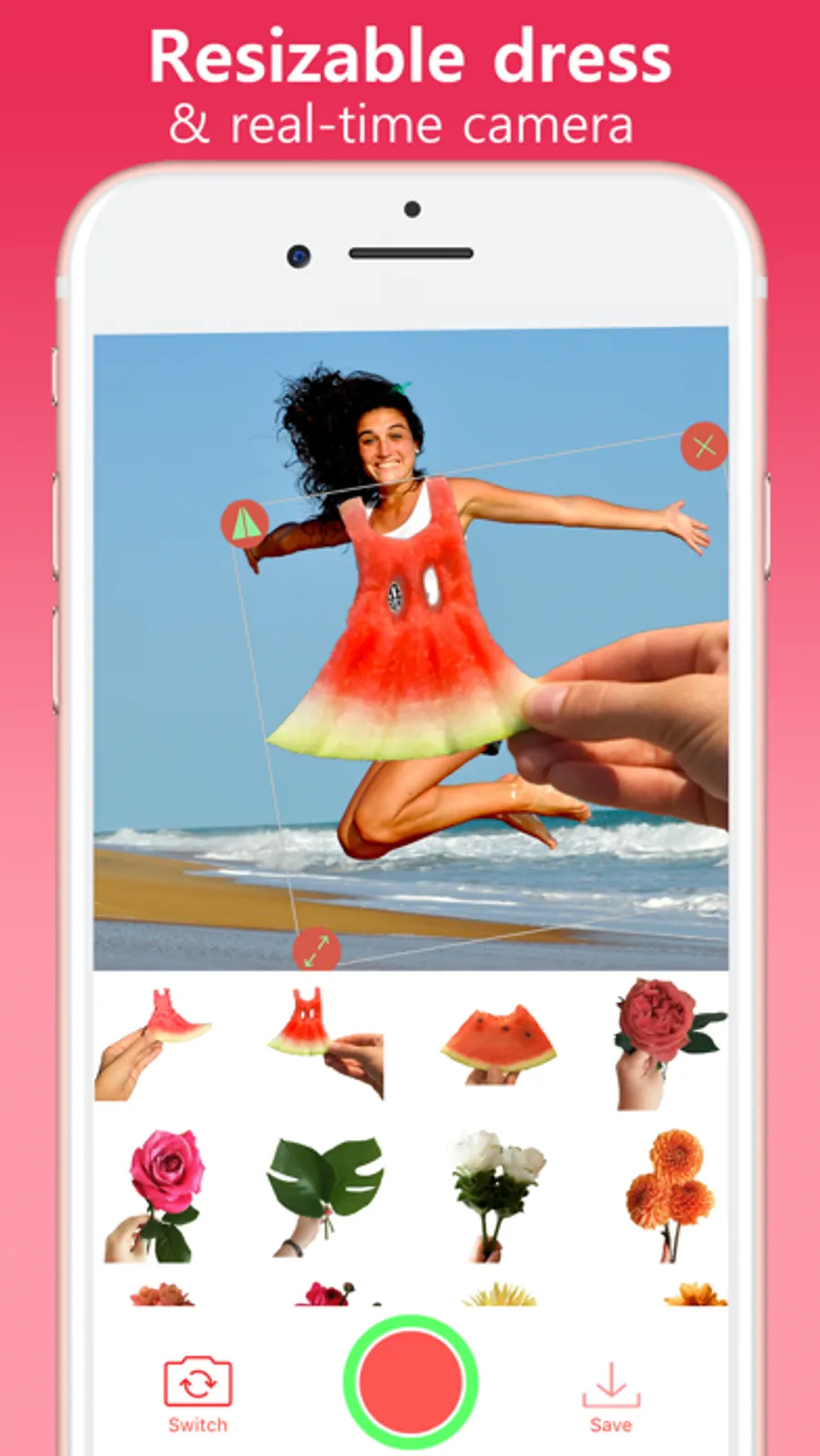 Put on various dresses in real time and take pictures instantly.