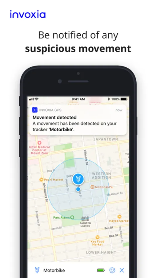 Instantly receive a notification when your motorcycle or other valuables equipped with an Invoxia GPS Tracker are tilted more than 30 degrees or if motion is detected.