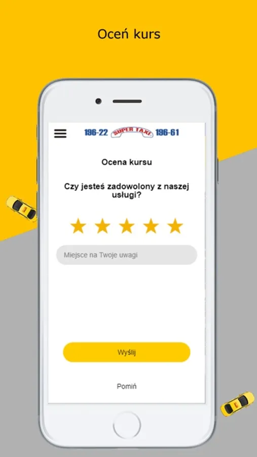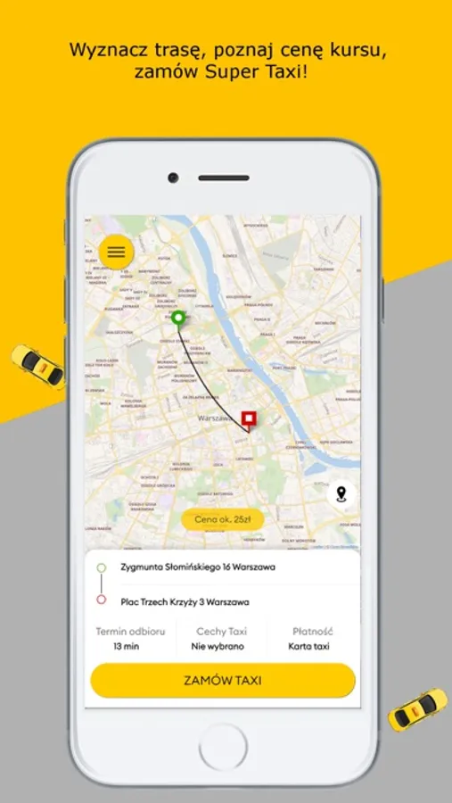 A free application for ordering a taxi in the Super Taxi 196 22 corporation in Warsaw. The application will allow you to order a taxi quickly and conveniently, estimate the cost of travel and waiting time, and notify you when the taxi arrives at the order address.