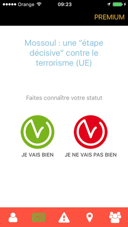 Powered by AFP news (Agence France Presse), this application alerts its users of major crises in the geographical area of their choice. They can immediately alert their contacts of the danger and inquire about their respective situations: