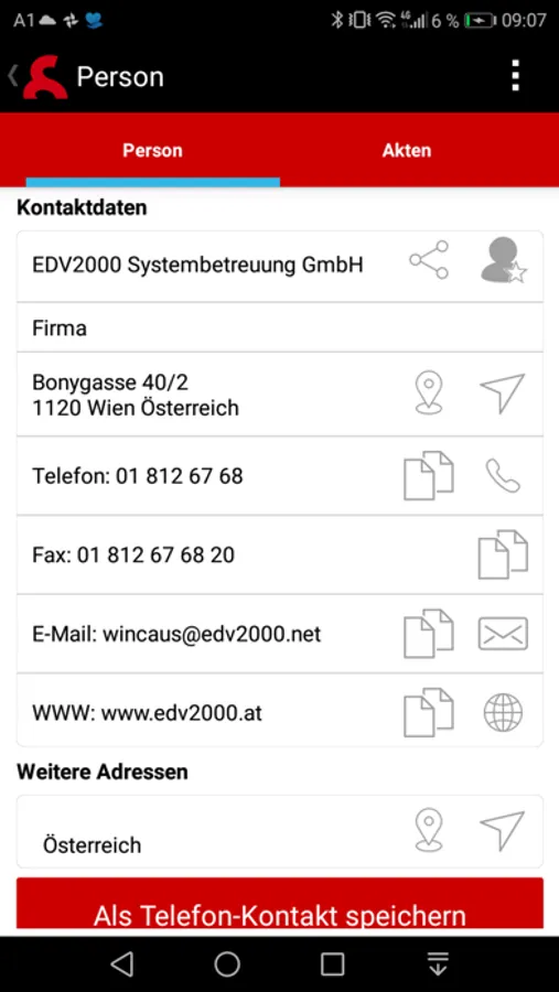 • Personendaten als Telefonkontakt abspeichern