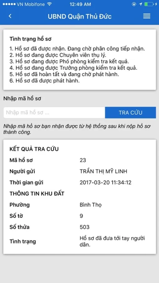 - Tra cứu tình trạng hồ sơ đã nộp.