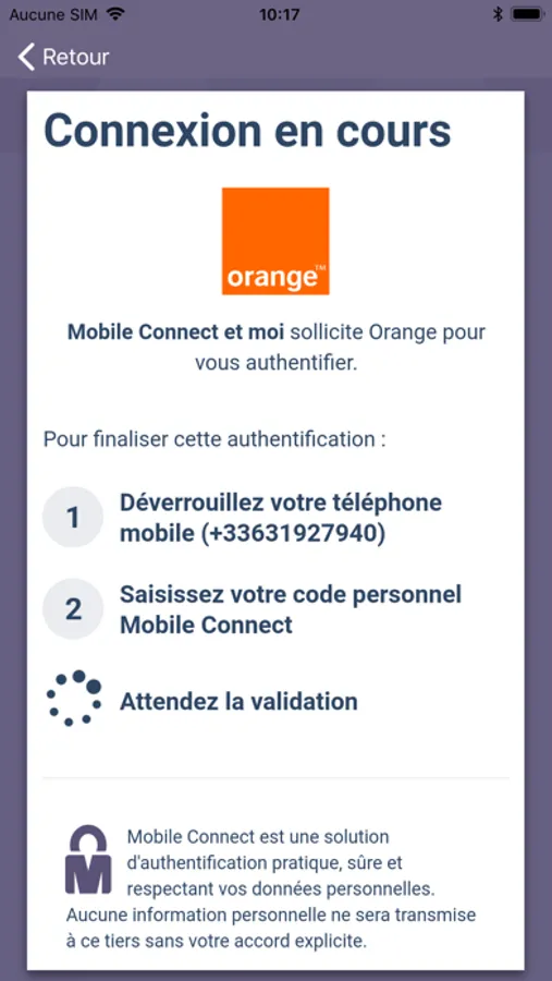 Sécurisé : Mon code secret est protégé par ma carte SIM et mes données personnelles ne sont partagées qu’avec mon accord explicite.