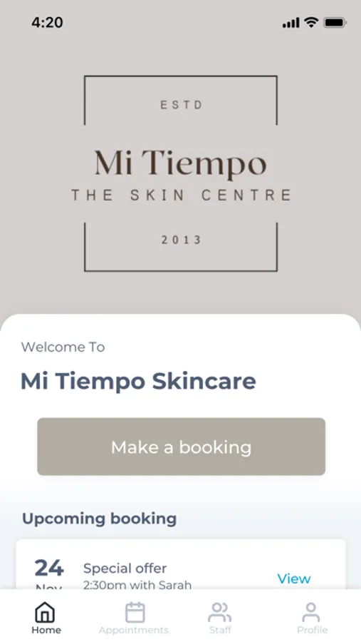 The Mi Tiempo Skincare app makes booking your appointments and managing your loyalty points even easier. You're just a few taps away from feeling good and looking great!