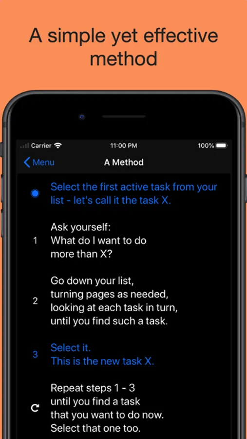 • When you find the task that you want to do now, start working on the selected tasks from the end (last selected = first to do)