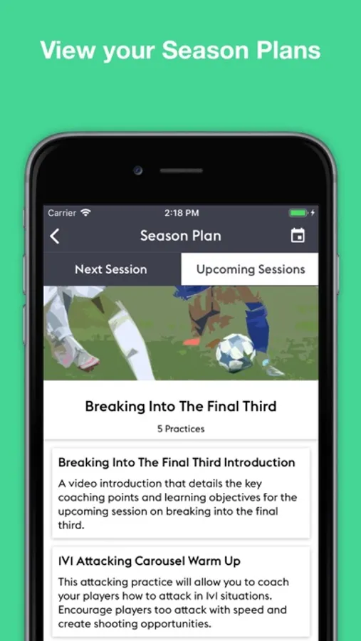 Watch the upcoming session from the Season Plan for any of your teams. See the equipment list, practice set up, watch the session video and show your players the practice animation at training.