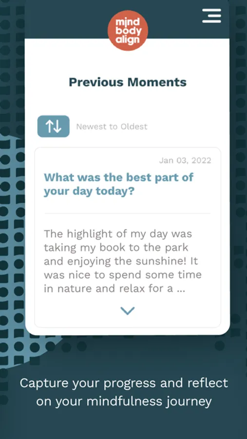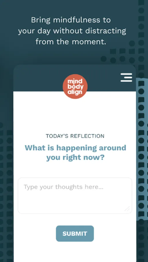 Align brings mindfulness to life, quietly and easily. Align delivers short, thought-provoking reflection prompts as notifications. When you receive one of these mindfulness moments, you choose the next action. You may type up a response or simply take a moment to consider the prompt before continuing on with a recentered mind and a focus on the present.