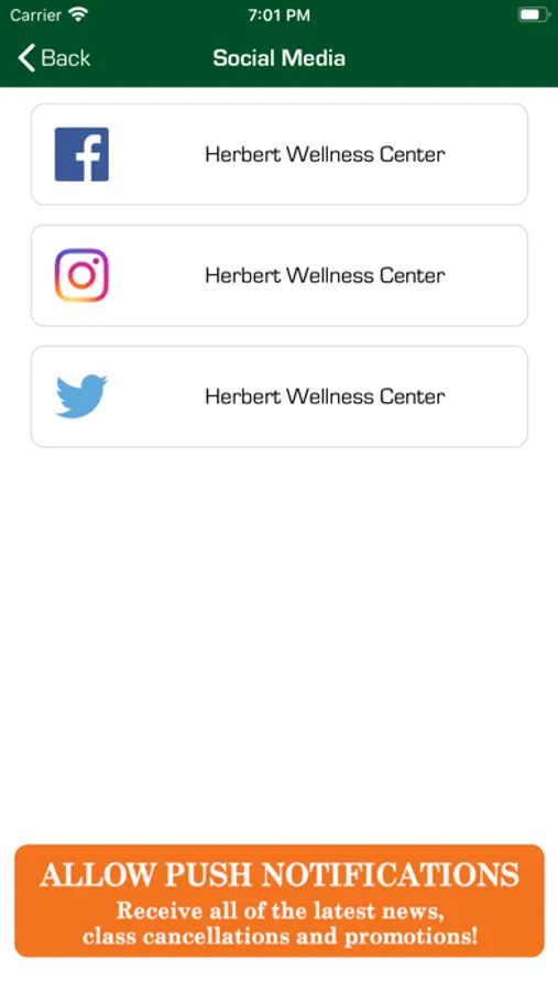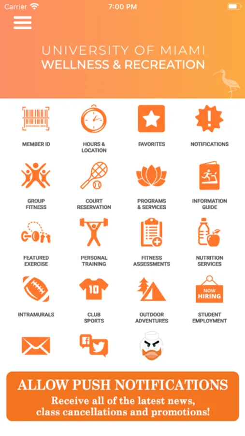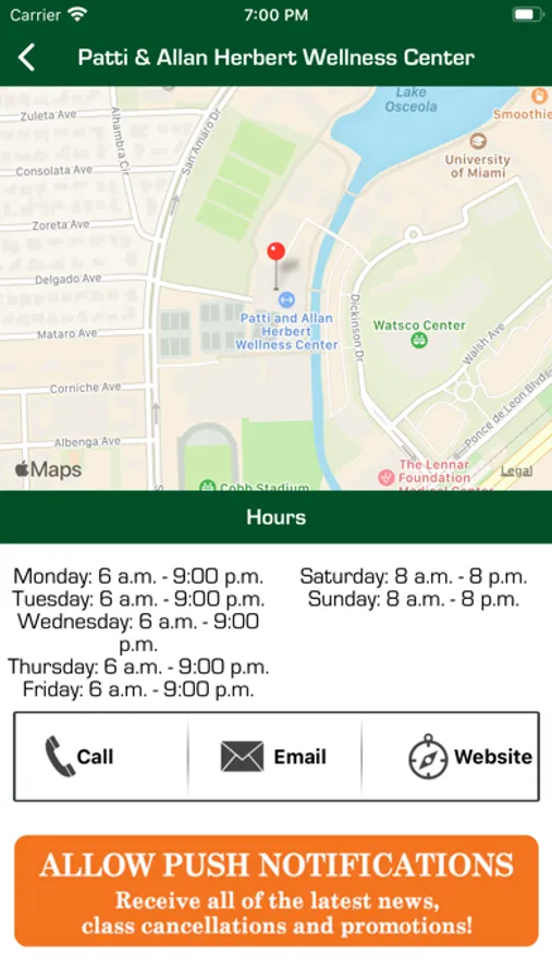 Welcome to the official app for the University of Miami Department of Wellness & Recreation's Herbert Wellness Center. Get info about group exercise classes, intramurals and club sports, wellness programs, facility hours, and more. Allow Push notifications to get updates on class cancellations, facility closures, and upcoming special events.