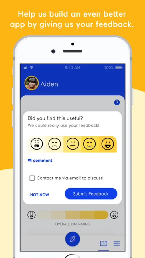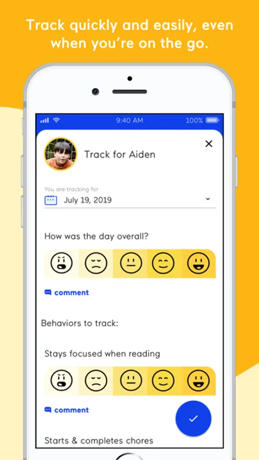 •Customize a daily tracker to keep track of good days and bad days, rate your child’s progress on behavioral goals, and capture notes