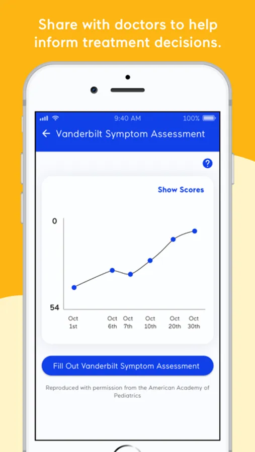 •Complete a clinically-validated ADHD Symptom survey and see changes over time