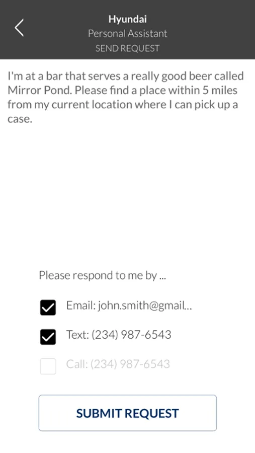 Hyundai Live Assist provides registered users of the personal assistant service with expanded access to a world-class team of professional assistants. The mobile app gives registered users the ability to make requests from anywhere in the world with a data connection. Users are able to view their entire request history and to optionally submit their geolocation when calling or submitting a request. Now your team of Personal Assistants will be able to see exactly where you are and get you what you need, faster. Users will also have instant access to their Personal Assistant provider account and other information.