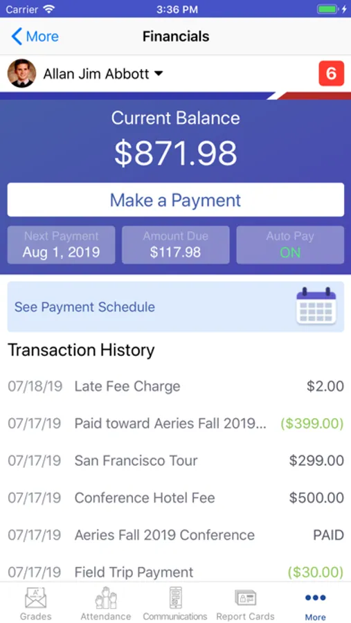 • In-app access to your Aeries Communications portal (if enabled at your district)