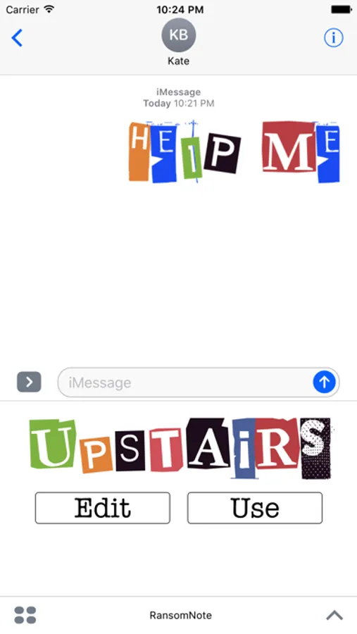 Make RANSOM NOTES for iMessage chats. Create and send images that look like they came from bits of newspaper headlines. You can type whatever you want!