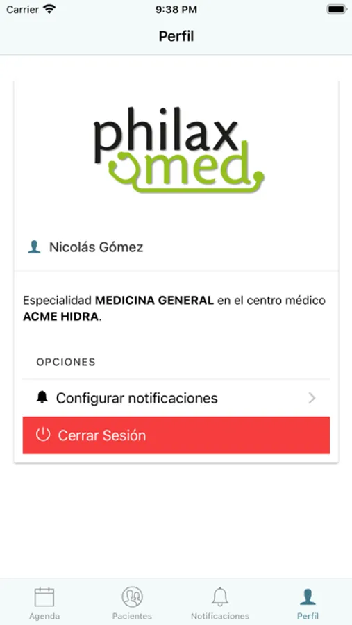 “Aplicación disponible solo para usuarios con agendas activas en el Sistema Philaxmed”