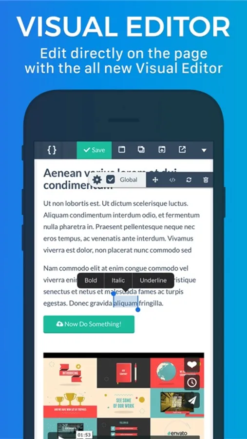 Simulate your website in both desktop and mobile environments using our all-new Responsive Page Editor. Instantly switch between device modes to edit your pages on any screen size in real-time. Create a website on your iPhone and watch as it scales to your tablet and desktop with pixel-perfect precision.