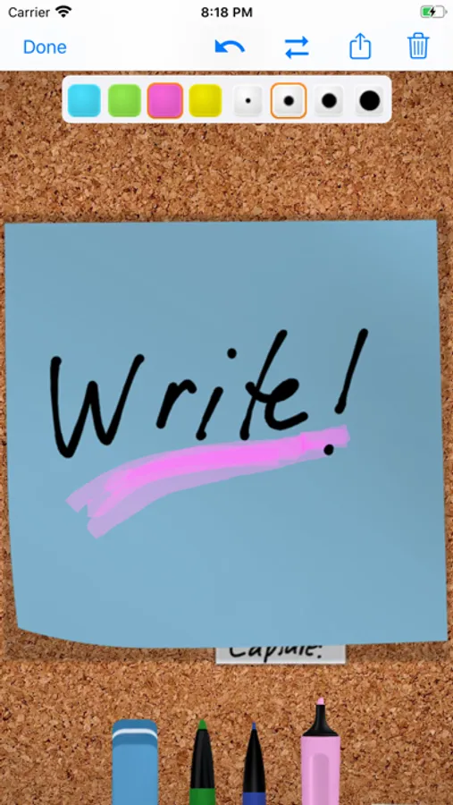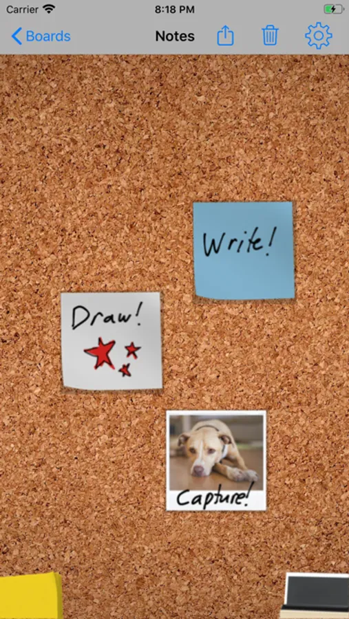 Note Board is a quick and fun way to handle your notes. Draw sticky notes on a virtual cork board or take an instant photo as a memo.