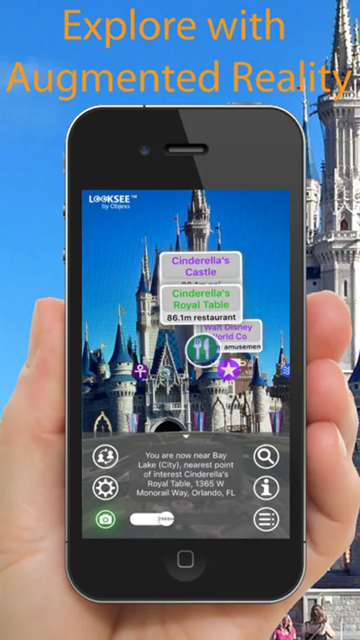 Looksee AR for Orlando and Central Florida, USA, is an Augmented Reality (AR) viewer used to find places of interest from close up to 10km away directly within your phone's camera view and add fun, knowledge and interest to your adventures and tours.