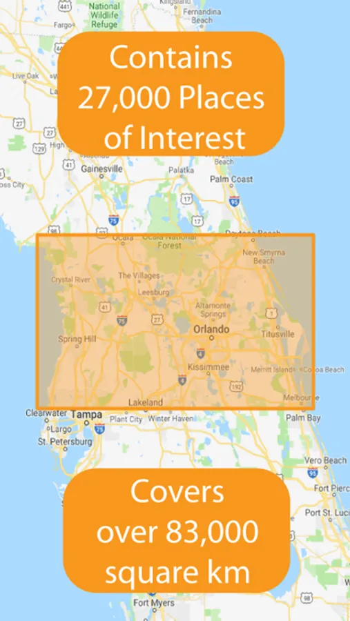 In fact there are around 10,000 places of interest viewable within the App including Orlando Theme Parks, Cocoa Beach, Green Swamp Preserve and Chassahowitzka Wildlife Refuge.
