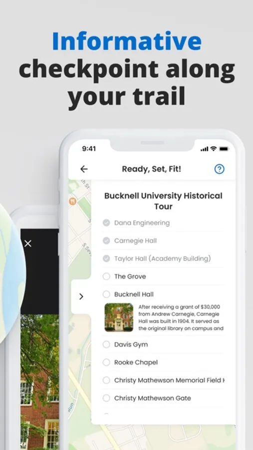 A health and wellness app designed to introduce users to historical and cultural landmarks in their area while also helping them keep up with fitness goals by providing workout paths that they can walk or run.