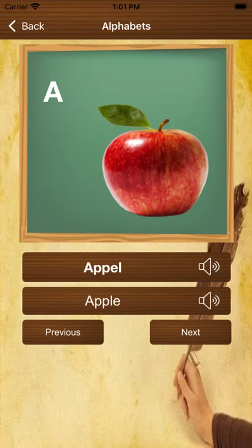 Users can learn each Dutch alphabet character using its familiar word and it’s pronunciation by playing audio with background music.