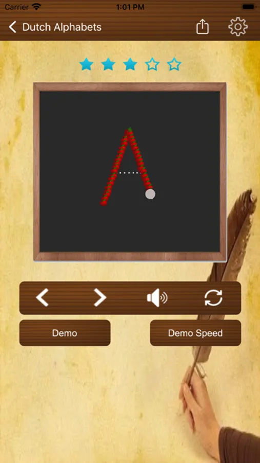 This Dutch learning app allow users to lean each Dutch letter writing and practicing in solo mode or play with friends mode. The traced Dutch letters and word images can be saved and shared in social medias like Facebook, Twitter, and email to others. The tracing font color and background can be personalized.