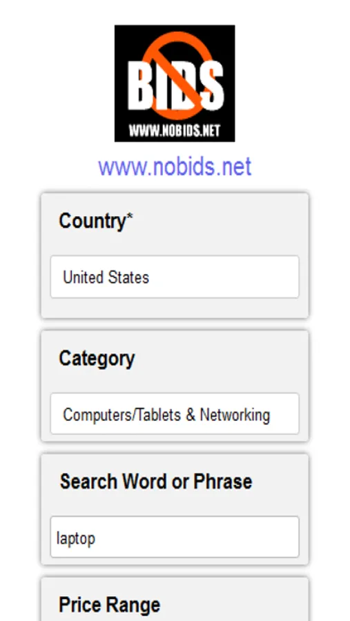 Use the No Bids App to search eBay for items which are ending now and in the near future that have No Bids.