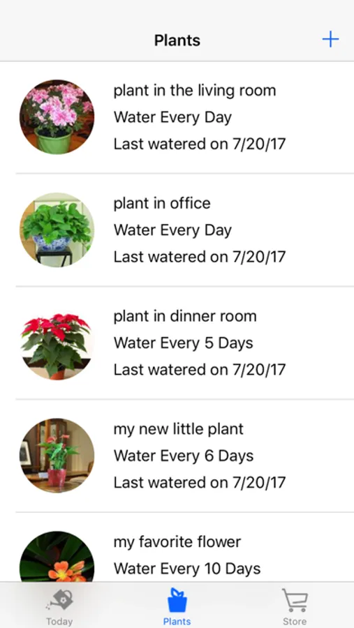 + View all the plants that need to be watered today