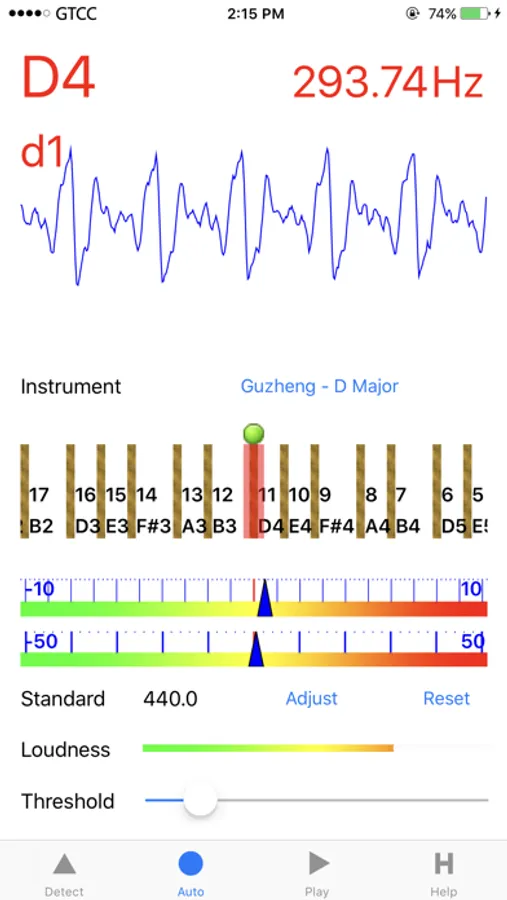When you pluck at the string of your musical instrument, it can automatically measure the pitch of the string, and through a variety of methods to indicate the accuracy of the pitch; addition, it can issue the standard sound of the strings, for you to tune through listening.