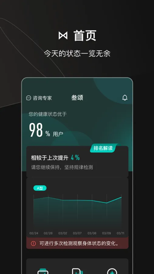 叁颂提供的健康报告、健康管理方案等健康建议只限于根据用户的有限检测数据和主观描述作出判断,不能代替执业医师的当面诊断和专业建议。用户在作出任何医疗决定前应根据自身健康状况自行评估,必要时需在专业医务人员指导下进行。