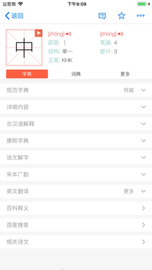 4、汉字释义/例句/词语/拼音/五笔/部首/笔画/造句/翻译
