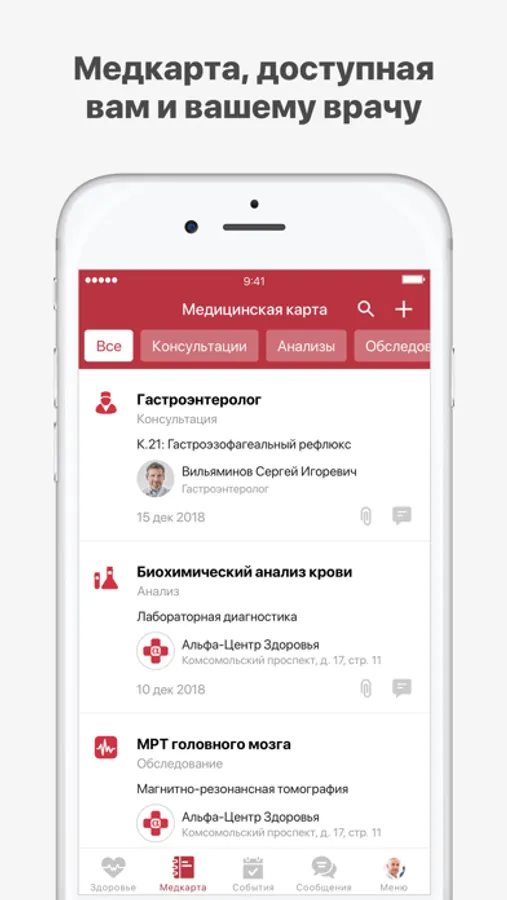 — Записывайтесь на прием к врачу, получайте медицинские данные после приема и получите напоминания о предстоящем визите.
