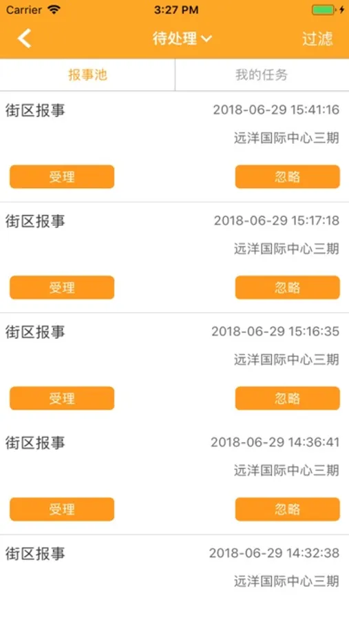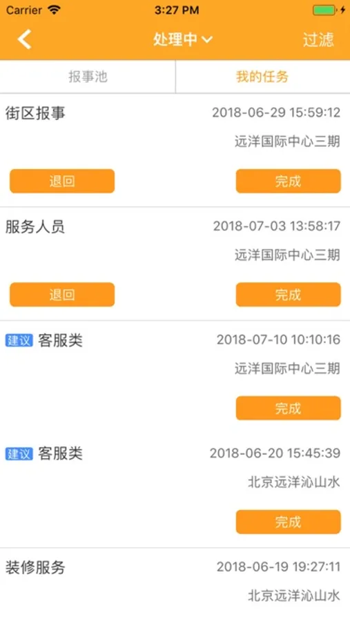 报事处理:用户可在APP端对于小区业主的报事进行处理;