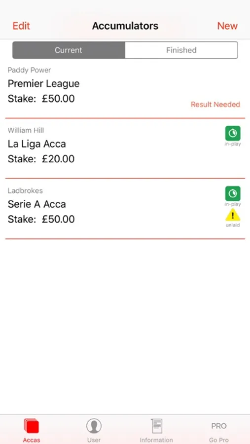 Subscribe to the app for £1.99 / month and you can have an unlimited number of accumulators.