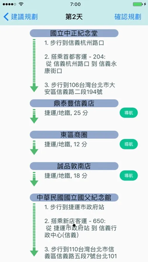 2. 交通方式建議 - 依照所規劃的行程 , 將自動幫您從Google 搜尋出最佳的交通資訊 , 省去您一個個景點丟到Google map搜尋的時間