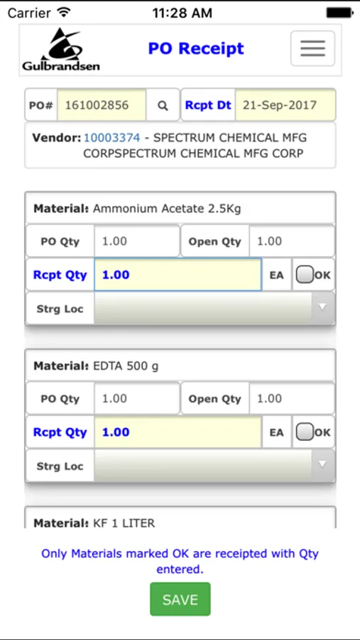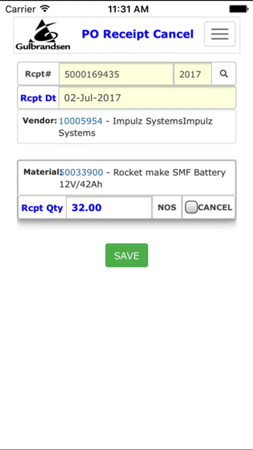 Gulbrandsen SAPApp Screenshots
